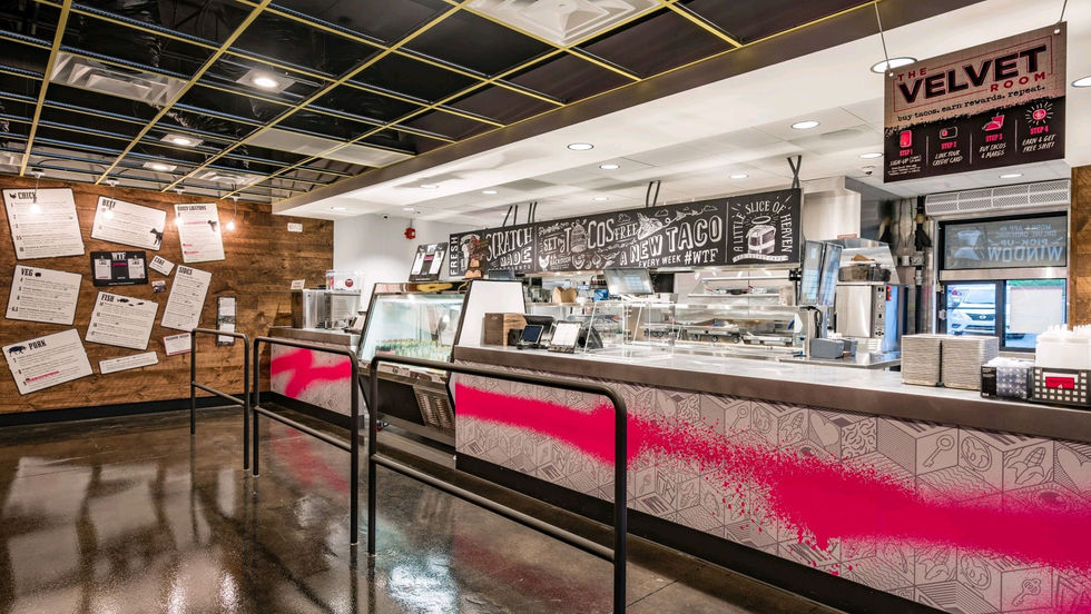 The East Nashville location features a vibrant mural with neon colors and local motifs like guitars and cowboy boots, celebrating the neighborhood’s artistic spirit and musical heritage. This bold artwork enhances the space, creating a visually engaging and community-connected dining experience.