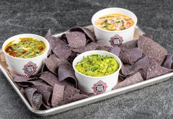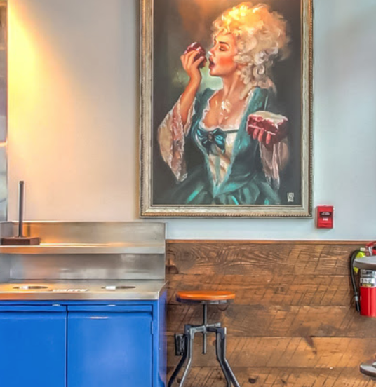 The Velvet Taco location in Wynwood, Miami, showcases a vibrant and artistic design that reflects the neighborhood's creative spirit. The interior and exterior murals, curated by the Miami-based global art group The Color Dreamers, feature bold, abstract designs, including a whimsical depiction of a grizzly bear enjoying a taco. These murals infuse the space with playful energy and align with Velvet Taco's brand identity, which emphasizes bold creativity and artistic expression.