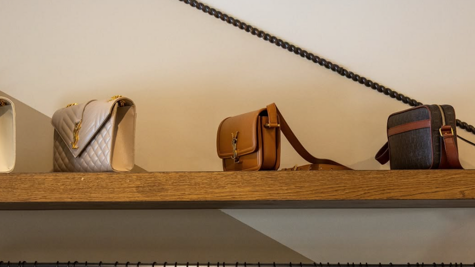 This charming boutique interior blends natural textures and modern luxury for a warm, upscale shopping experience. Soft neutral tones and earthy materials such as rattan, wood, and linen—pair beautifully with rich green accents and woven lighting fixtures to create a calm, inviting ambiance. The layout is open and curated, featuring coordinated racks of colorful and monochrome apparel, designer handbags, and sunglasses. A cozy seating area with plush chairs and a velvet sofa adds a lounge-like feel, encouraging customers to relax and linger. The overall aesthetic balances sophistication and comfort, aligning perfectly with a modern luxury retail brand.