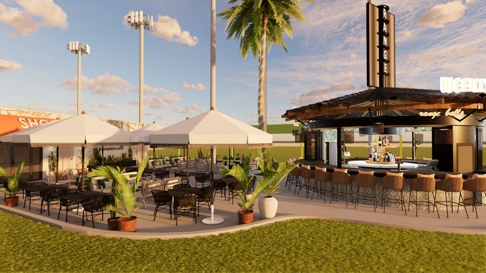 The Weekly Services Bar & Patio concept blends laid-back outdoor leisure with refined, resort-inspired design. A mix of natural textures, patterned tile, woven seating, and lush greenery creates a vibrant yet relaxed social atmosphere. Soft neutral umbrellas, tropical accents, and layered lighting add warmth and visual rhythm, while the central circular bar anchors the experience—inviting guests to gather, unwind, and enjoy the open-air setting in style.
